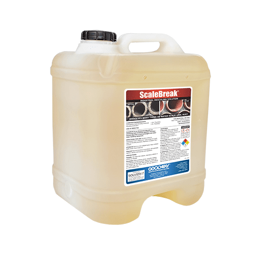 This high-performance biodegradable industrial descaler is fortified with powerful low-foaming, wetting, and penetrating agents and contains superior corrosion inhibitors. Goodway’s ScaleBreak is fast, economical, and efficient.